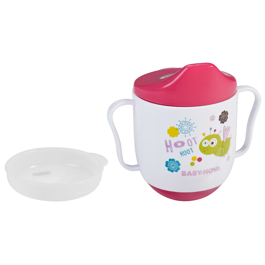 Baby Nova Cana invatam sa bem, capacitate 220 ml, de la Novatex, Germania, este o cana special conceputa pentru copiii mici cu varsta peste 6 luni, care invata sa bea independent, intr-un mod simplu si confortabil. Manerele ergonomice si antiderapante ale canii asigura o prindere buna in mainile copiilor mici. Mustiucul este moale, iar o proeminenta pentru nas faciliteaza respiratia in timpul utilizarii. O supapa la interior asigura egalizarea presiunii si, de asemenea, face cana etansa. Capacul de protectie inclus garanteaza transportul igienic.