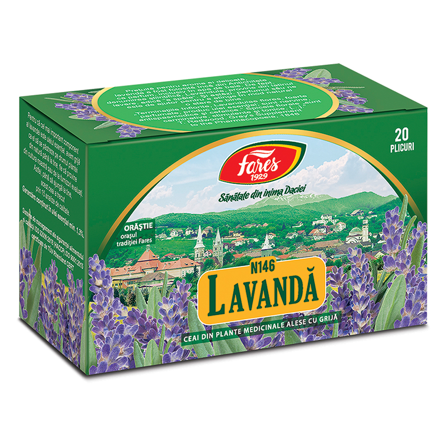 Florile plantei Lavandula angustifolia Mill., fam. Lamiaceae, contin ulei volatil avand ca si componente principale acetat de linalil, linalool, geraniol, borneol, tanin, saruri minerale, flavonoide, fitosteroli.