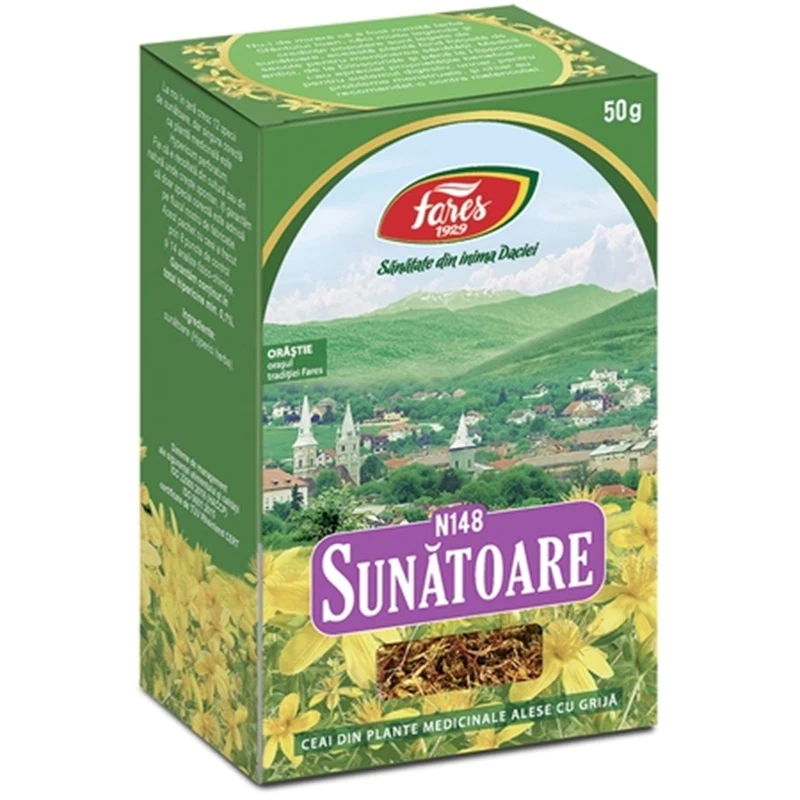 Ceai de sunӑtoare, recomandat în anxietate, depresie, tensiune nervoasă, insomnie, afecțiuni gastrointestinale și biliare.