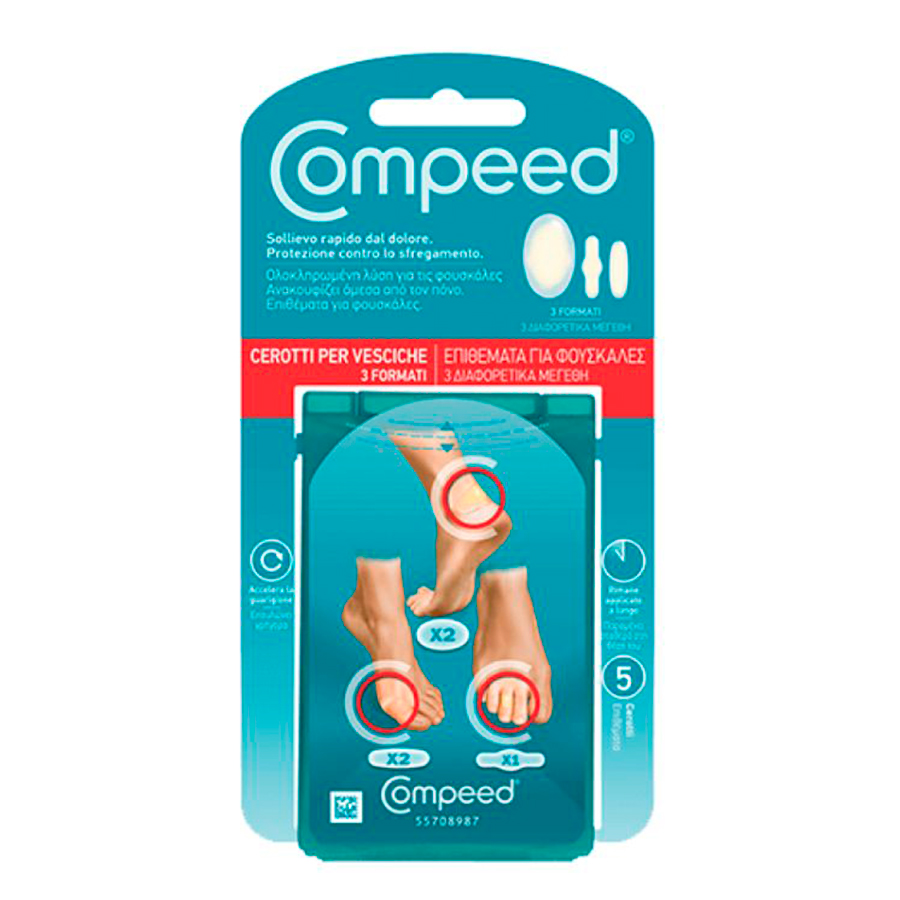 COMPEED® Plasturi mixt pentru basici reprezinta solutia completa pentru basicile picioarelor; selectia contine cei mai bine vanduti plasturi pentru basici. Pachetul contine 2 x Plasturi pentru basici de dimensiuni medii (Blister Medium), 2 x Plasturi pentru basici de dimensiuni mici (Blister Small) si 1 x Plasture pentru basici localizate la nivelul degetelor de la picioare (Blister on Toes). Esentiali in orice geanta!