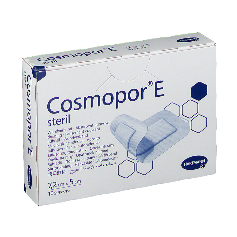 Plasturi sterili Cosmopor E sunt autoadezivi pe suport de material nețesut, moale, cu corp absorbant care nu aderă la plagă. Capacitate ridicată de absorbție și efect de căptușire, este prietenos cu pielea datorită adezivului sintetic hipoalergenic.