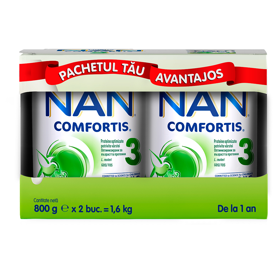Formula de lapte praf pentru copii, Nestle NAN COMFORTIS 3, de la 1 an, 2 x 800 g Pachet Promo, Nestle