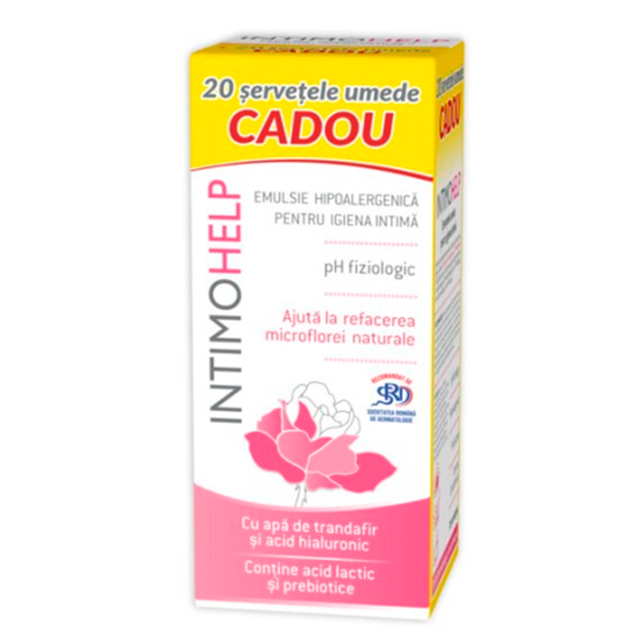 Intimohelp emulsie pentru igiena intima, 400 ml + Servetele umede, 20 bucati, Zdrovit
