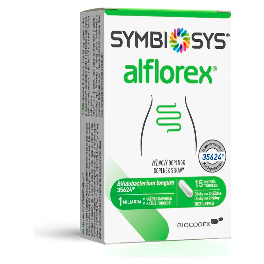 Symbiosys Alflorex este un supliment probiotic care contine tulpina bacteriana exclusiva Bifidobacterium longum 35624, studiata clinic;