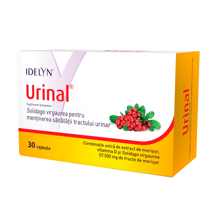 Urinal® conține o combinație unică de două substanțe active - NutriCran®, concentrat uscat din suc de merișor (Vaccinium macrocarpon), și CystiCran®, extract concentrat din merișor (Vaccinium macrocarpon), cunoscut și sub denumirea de afin american, precum și extract de Solidago vîrgăurea (Splinuță) și vitamina D. Fructele de merișor sunt o sursă bogată de bioflavonoide, compuși fenolici și alte substanțe naturale. Cantitatea de extract de merișor aferentă porției zilnice maxime (3 capsule) corespunde unei cantități minime de 57.300 mg de fructe de merișor. Solidago vârgăurea contribuie la menținerea în limite normale a procesului de eliminare a urinei (diureză). Solidago vîrgăurea ajuta la menținerea sănătății vezicii urinare și a tractului urinar inferior. Vitamina D susține funcționarea optimă a sistemului imunitar.